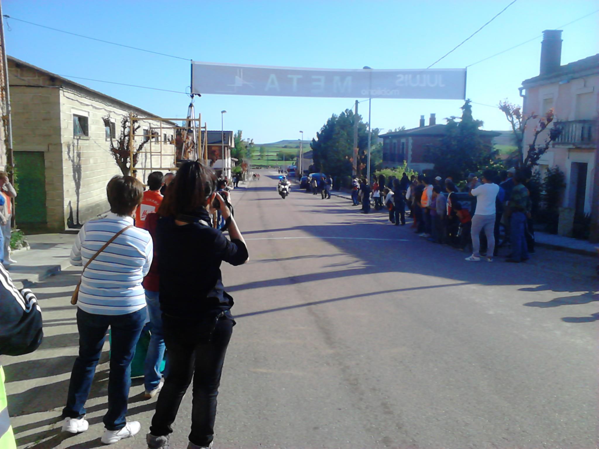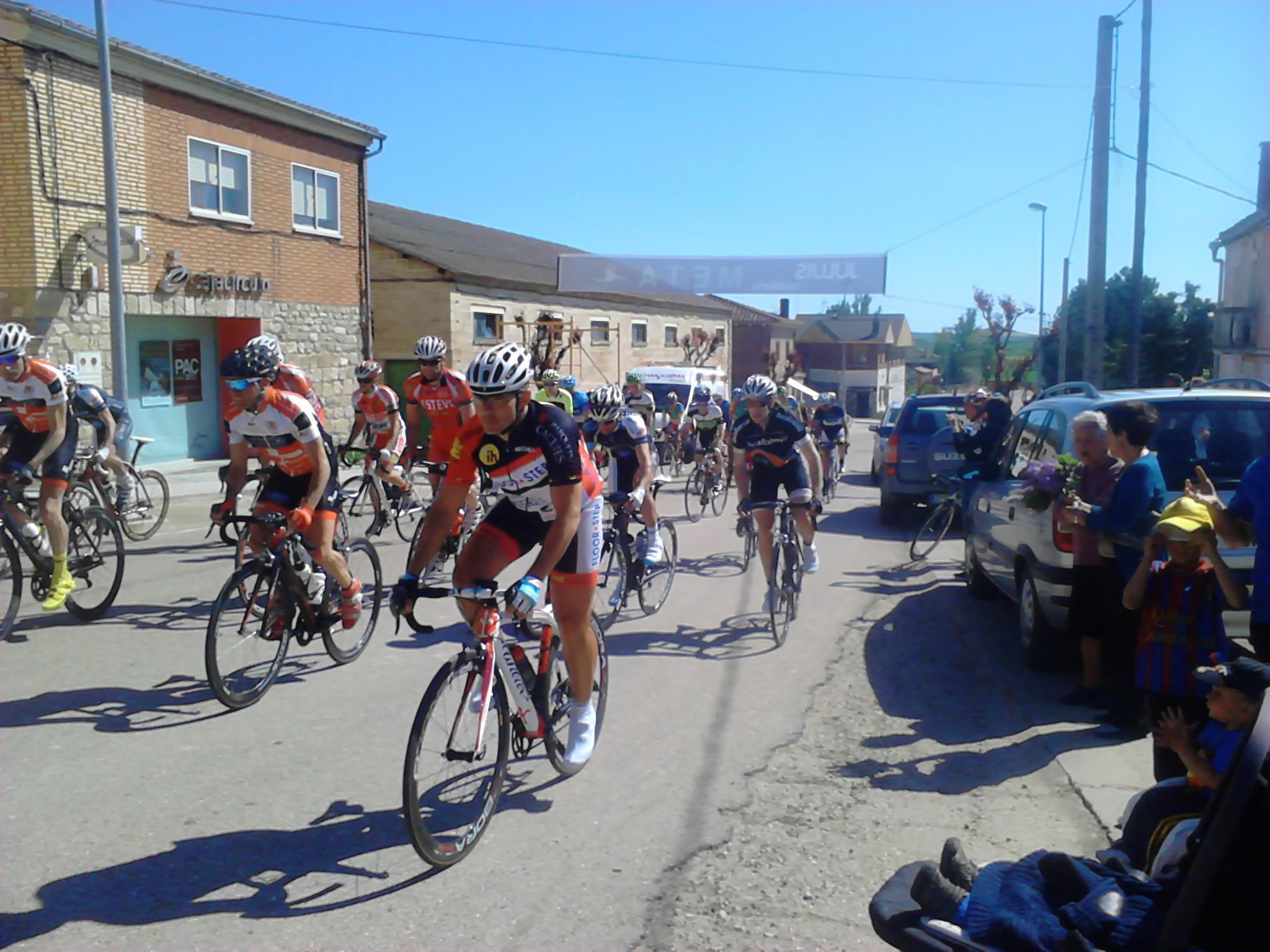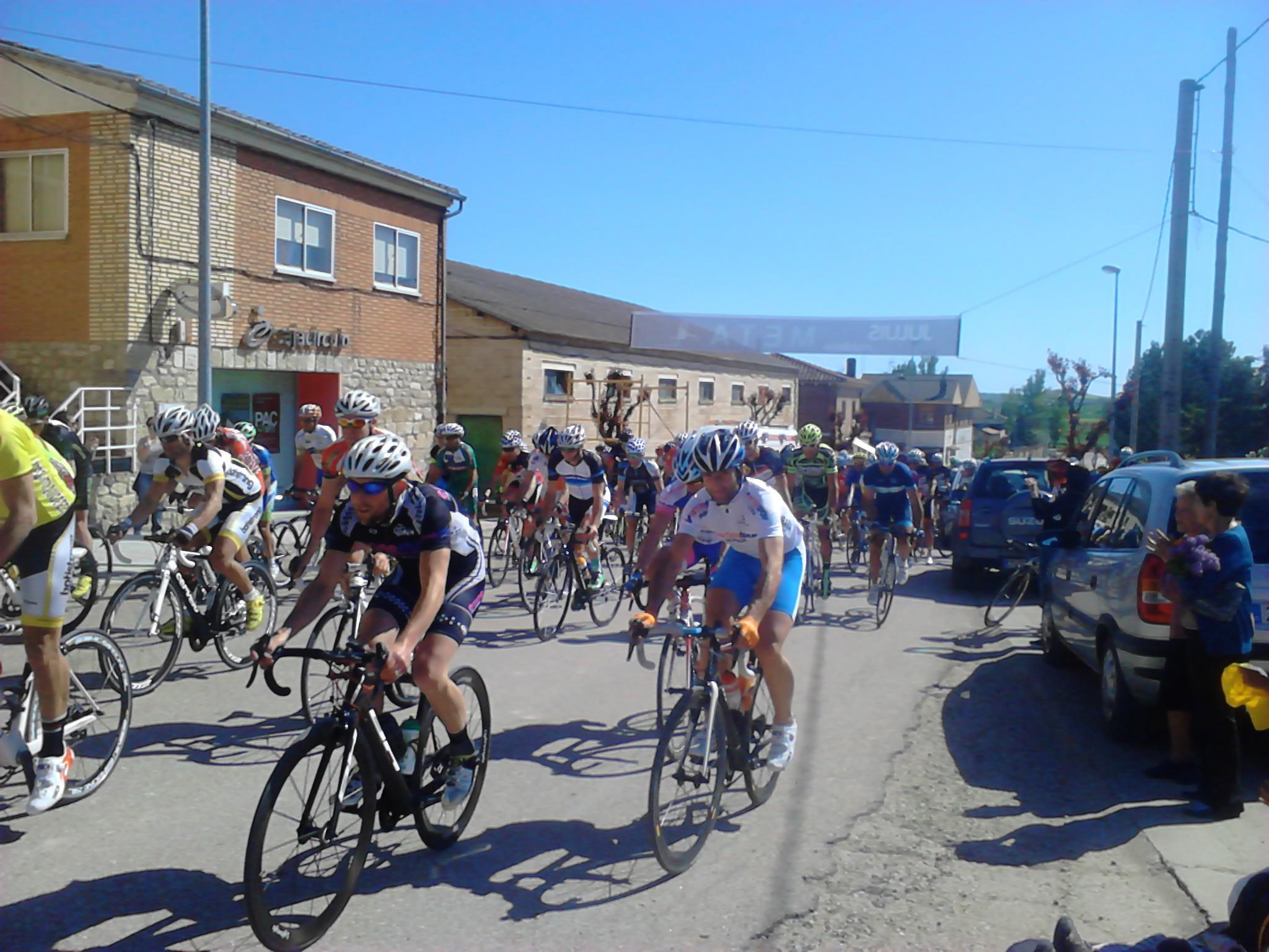 Giramos casi 180º y entramos en una carretera con asfalto del que se agarra y no permite rodar cómodo, aún cuando se vaya a rueda. El pelotón sigue rodando compacto y la velocidad hace que no se produzcan apenas intentos de fuga, o que estos sean neutralizados rápidamente. Yo lo intento en alguna ocasión, pero los corredores del Deportes Fernando me tienen vigilado (sin comerlo ni beberlo me vi en segunda posición en la clasificación de la Copa) . Así pasamos por primera vez por la meta.