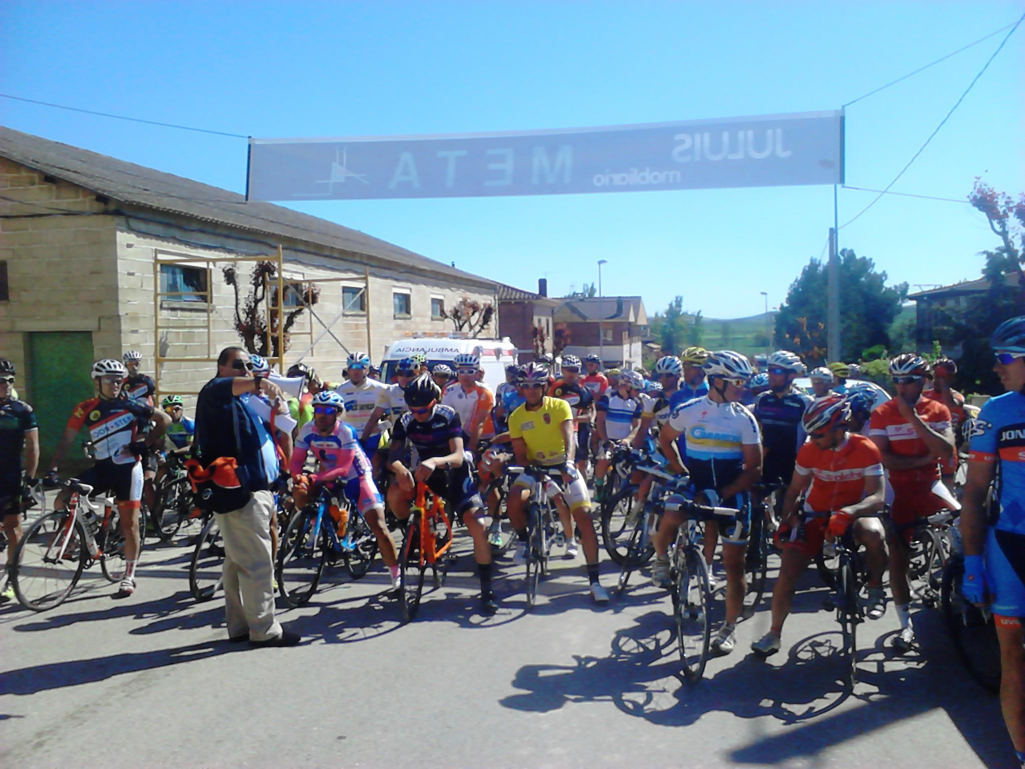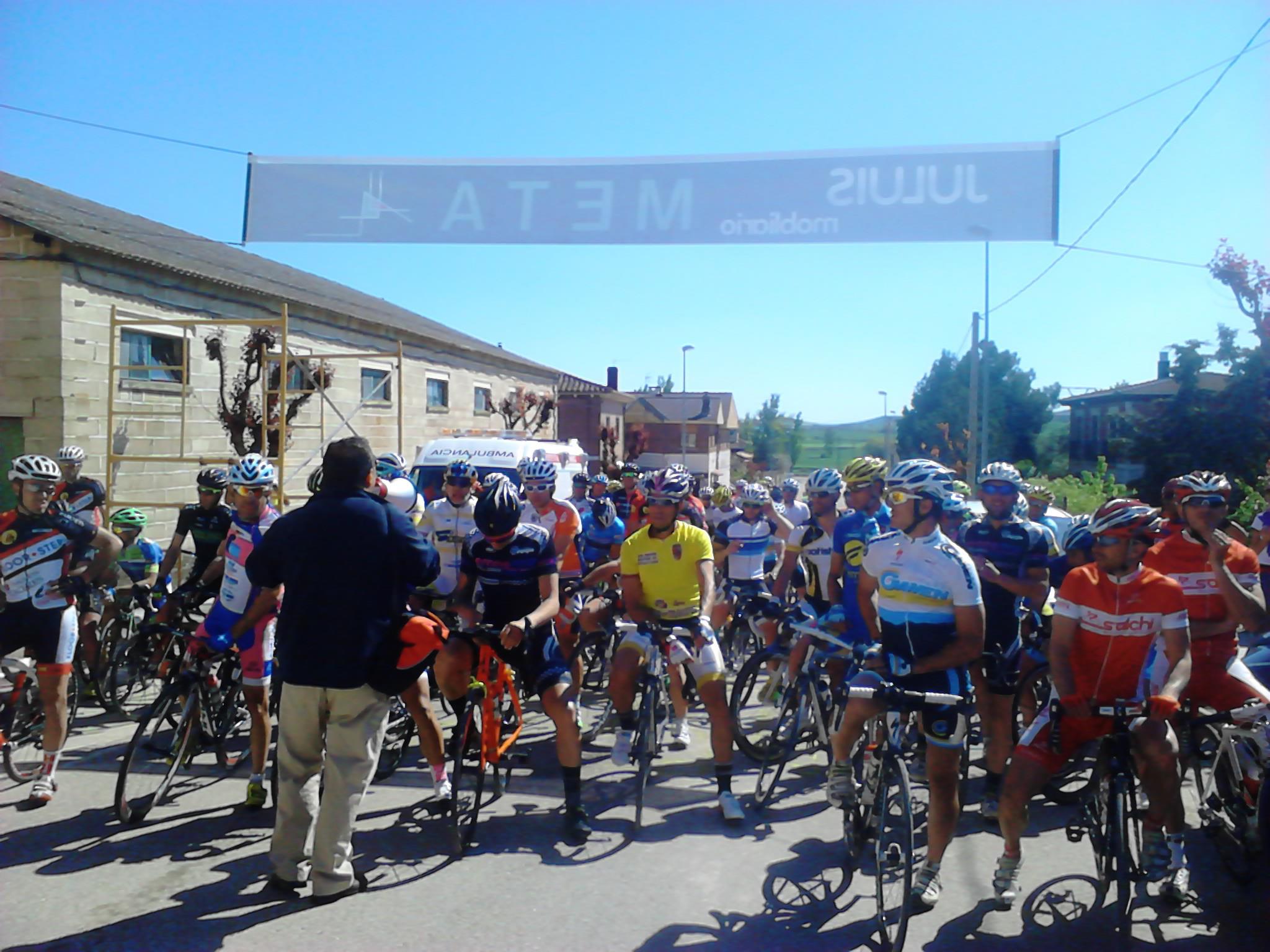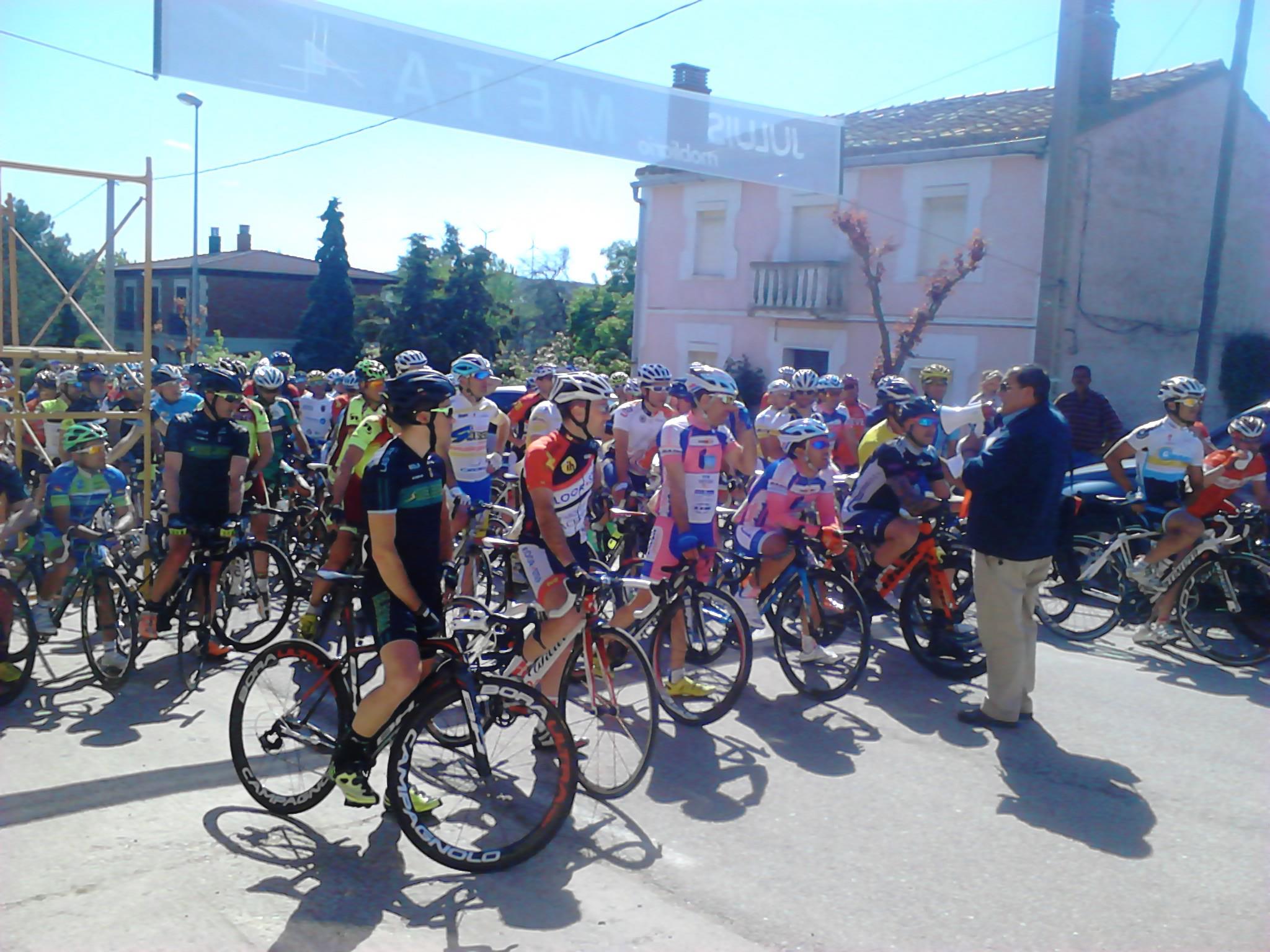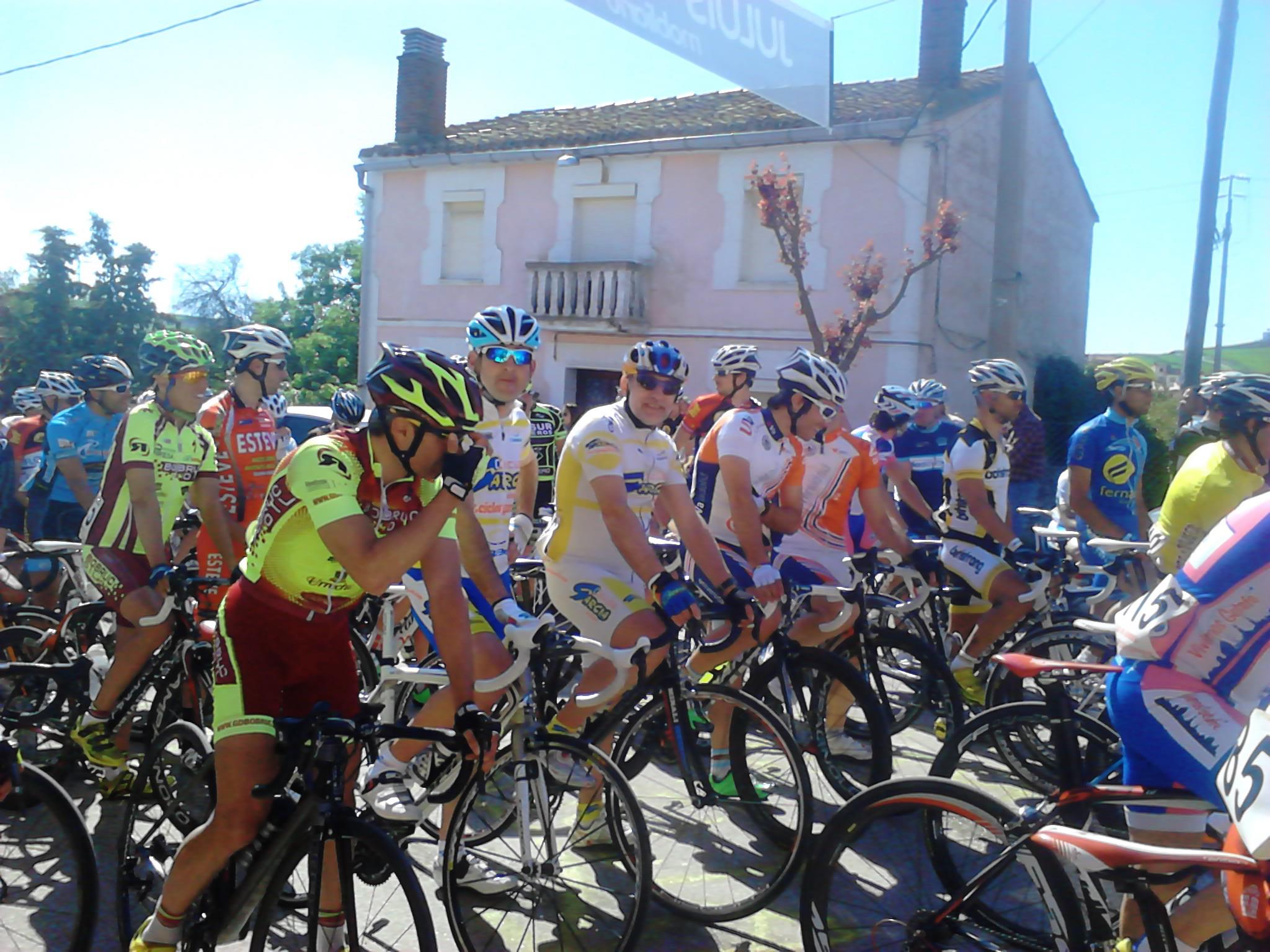 Giramos casi 180º y entramos en una carretera con asfalto del que se agarra y no permite rodar cómodo, aún cuando se vaya a rueda. El pelotón sigue rodando compacto y la velocidad hace que no se produzcan apenas intentos de fuga, o que estos sean neutralizados rápidamente. Yo lo intento en alguna ocasión, pero los corredores del Deportes Fernando me tienen vigilado (sin comerlo ni beberlo me vi en segunda posición en la clasificación de la Copa) . Así pasamos por primera vez por la meta.