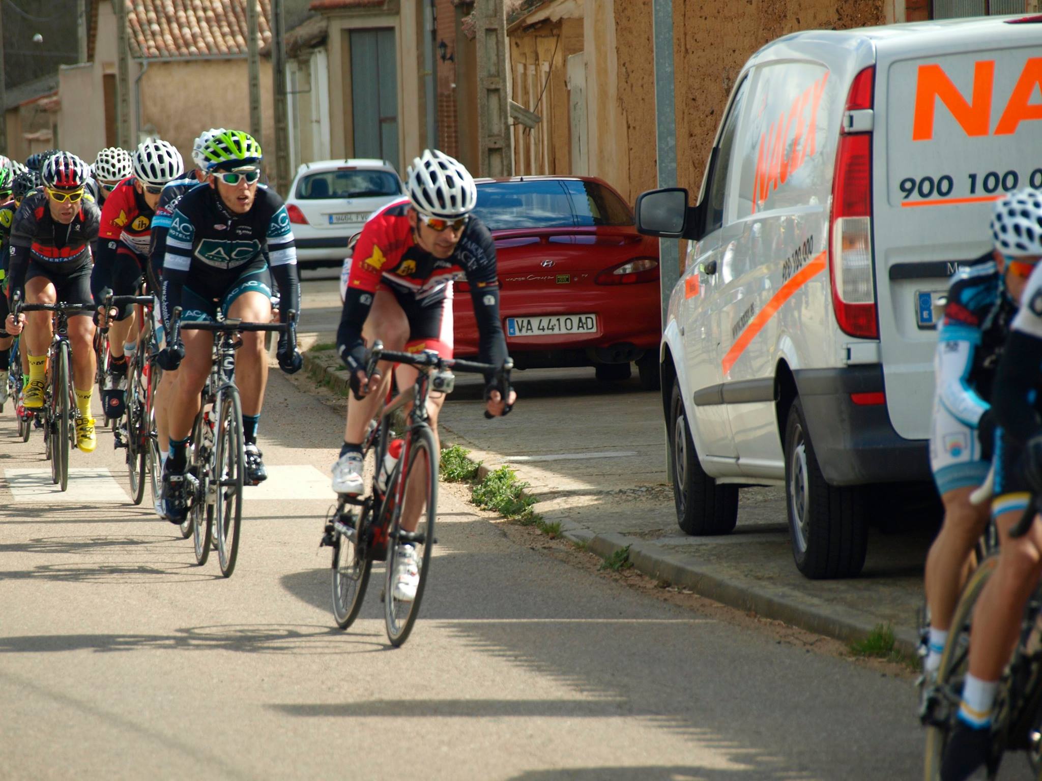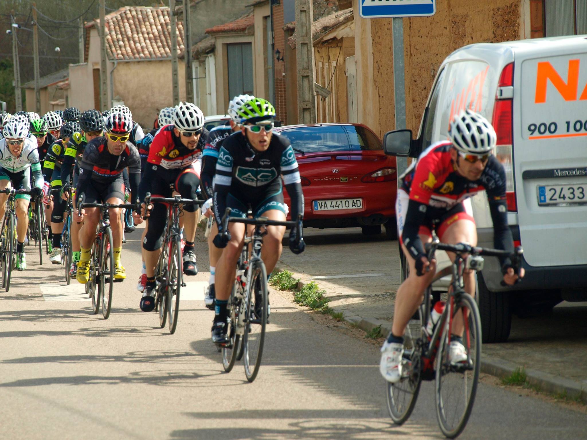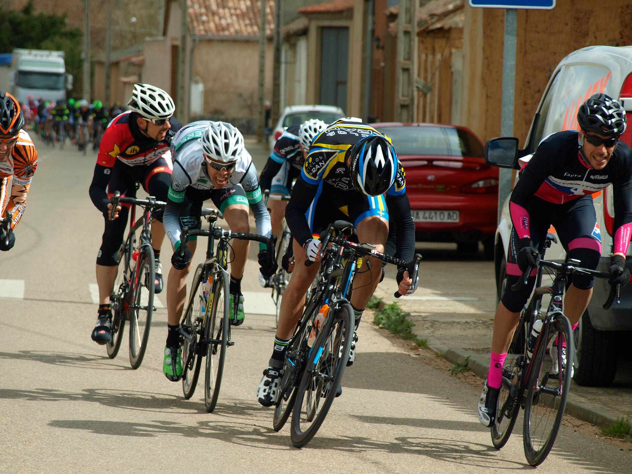 El repecho de Itero del Castillo era el principal punto caliente del circuito, aunque los giros de 90º también provocaban látigos que hacían sufrir a los corredores que rodaban a cola de pelotón. Entrar en las últimas posiciones en la curva que daba comienzo a la subida, era garantía de quedar cortado, con el consiguiente calentón si se quería volver a enlazar con el grupo. Dos veces lo sufrí en mis piernas 🙂