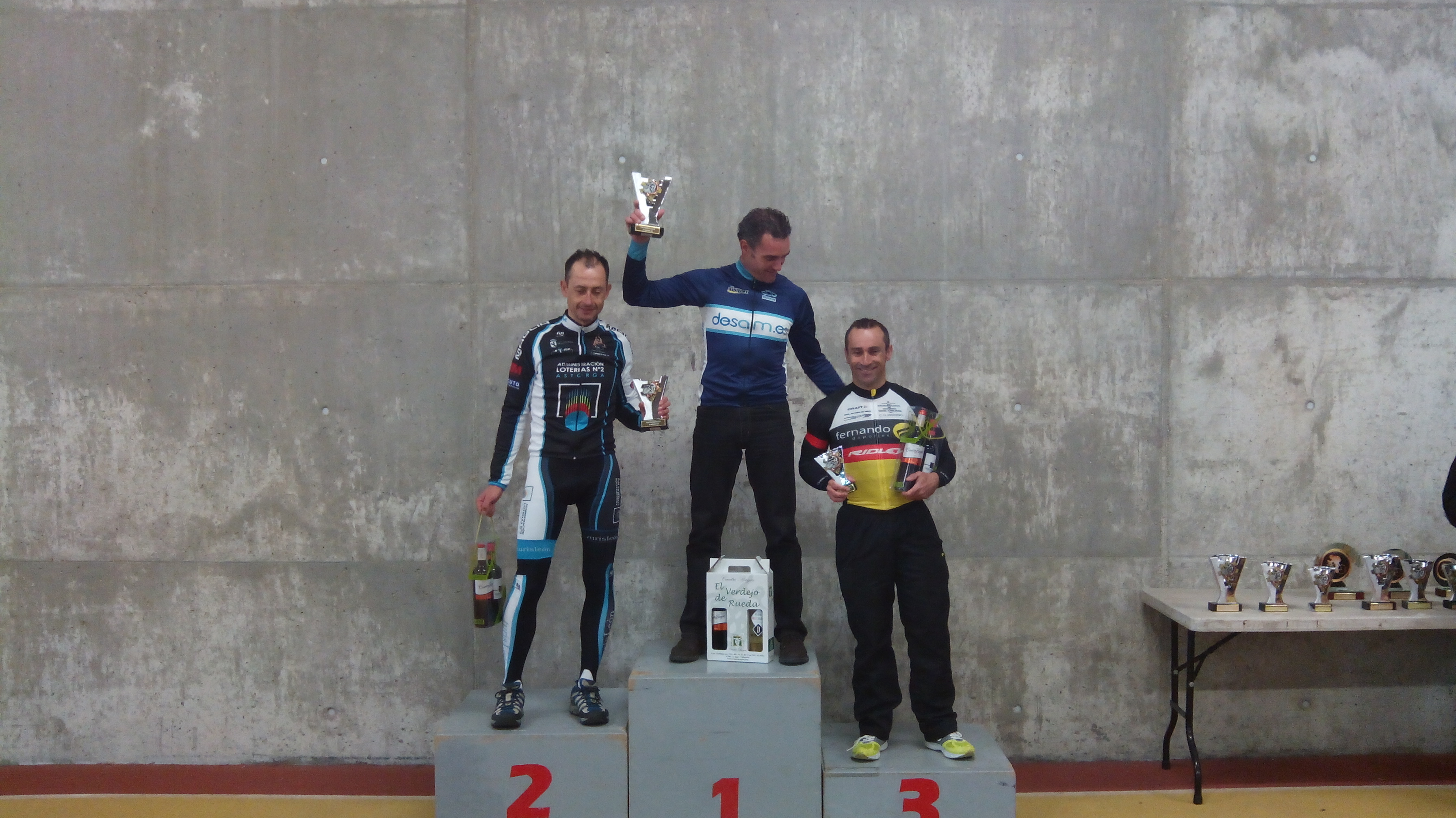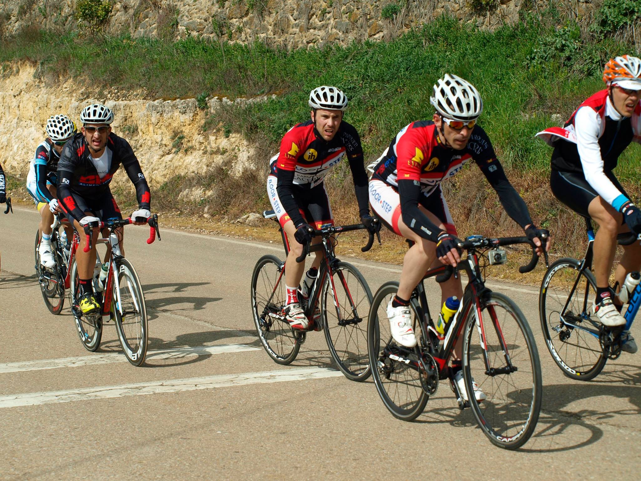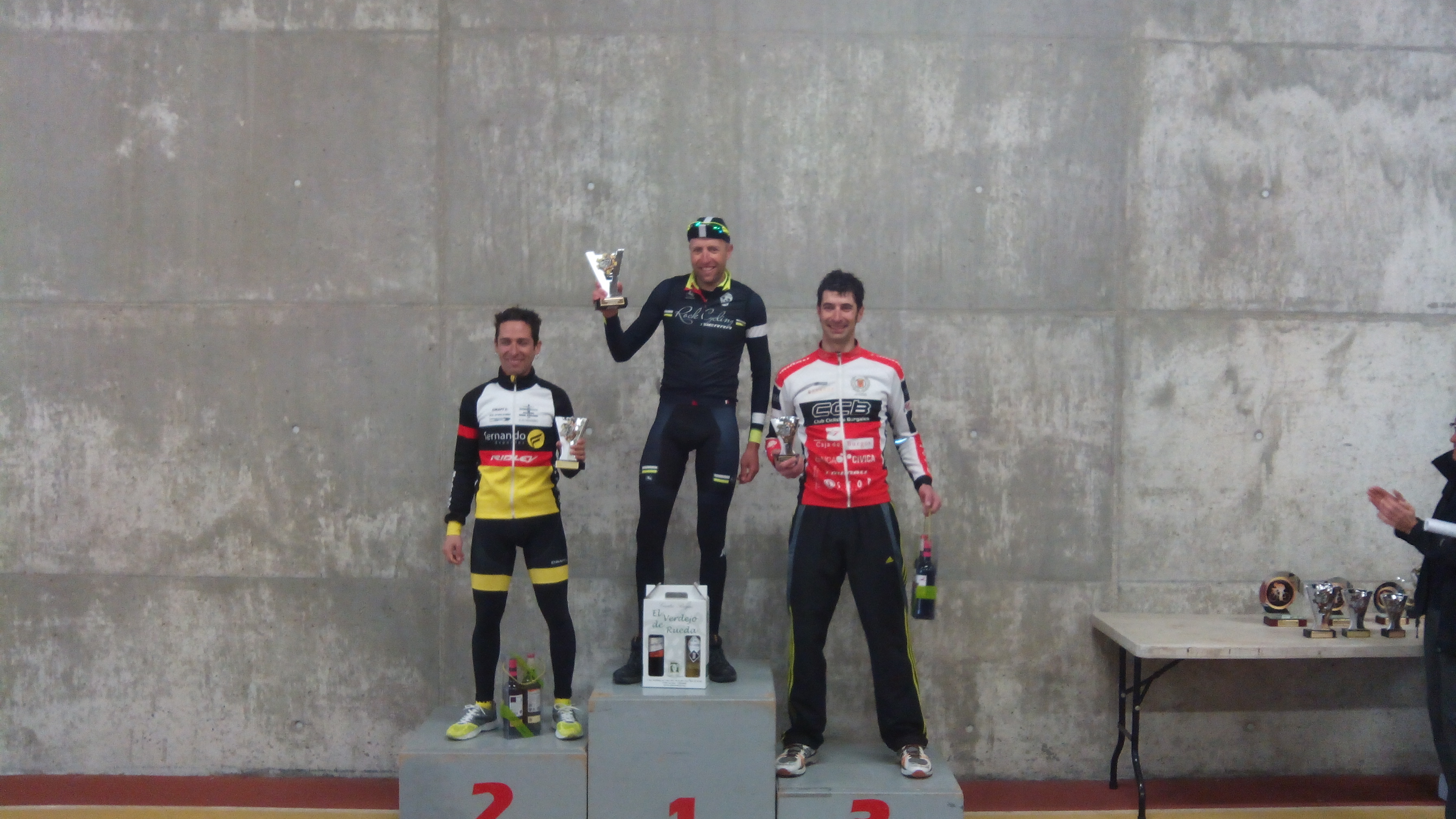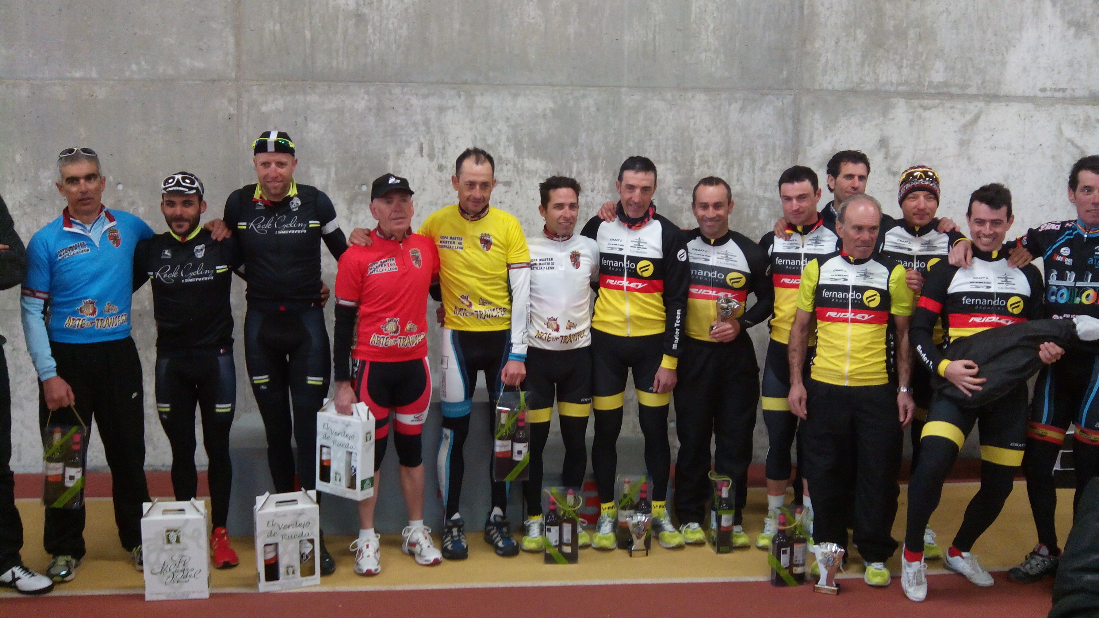 Mientras tanto, en la cabeza de carrera Jesús Merino trataba de seleccionar el grupo o puntuar para la clasificación de la montaña, o ambas cosas a la vez, en la subida de Wamba, localidad que debe su nombre a un rey visigodo y cuyo nombre se pronuncia con ‘B’, no digáis «guanba» por favor. El viento en el páramo no permitía alegrías, así que Merino volvió al redil. La jugada buena fue la que tenía preparada un hábil Turégano. El madrileño atacó en la rotonda que da entrada a Sotoverde y, mientras sus compañeros que quedaban mirando unos a otros, a ver quien le ponía el cascabel al gato, Turégano bajó piñones y puso la directa hasta la pancarta de meta, que cruzó en solitario. Por detrás Miguelín (Deportes Fernando), parece querer ganarse a pulso el título de Poulidor en la categoría máster y repetía segundo puesto.