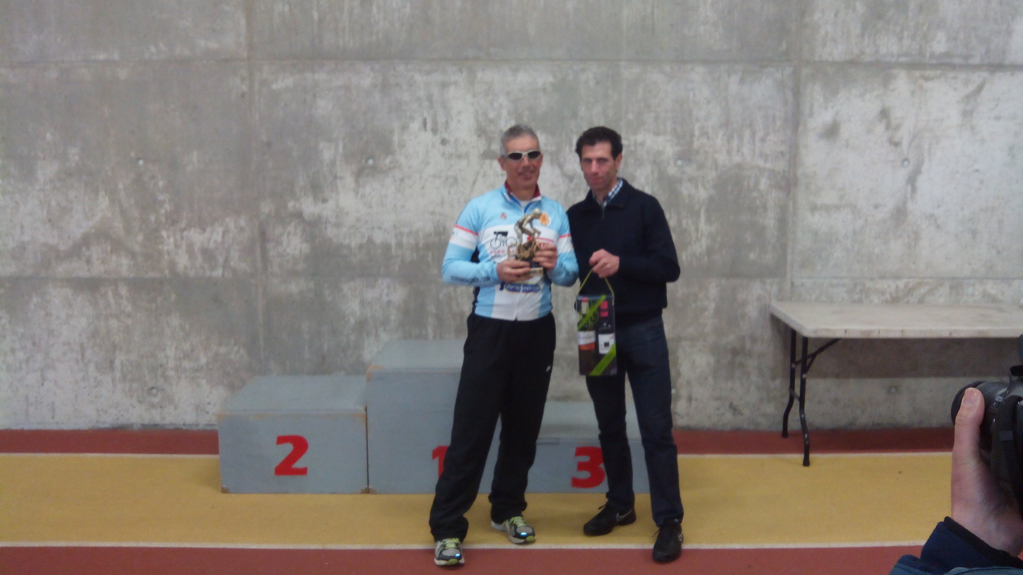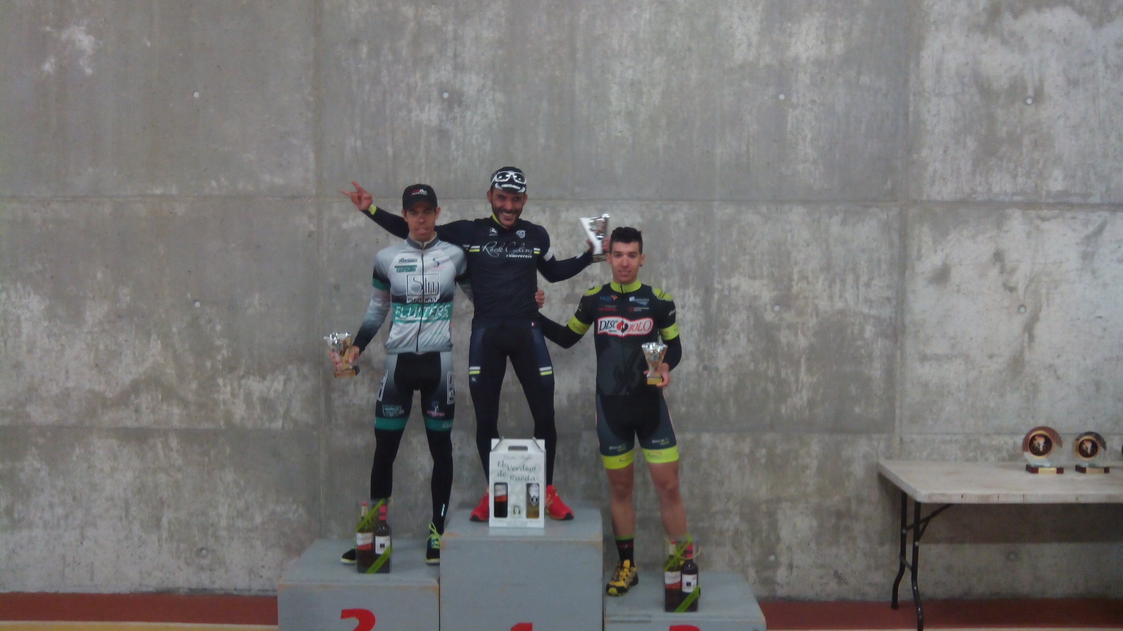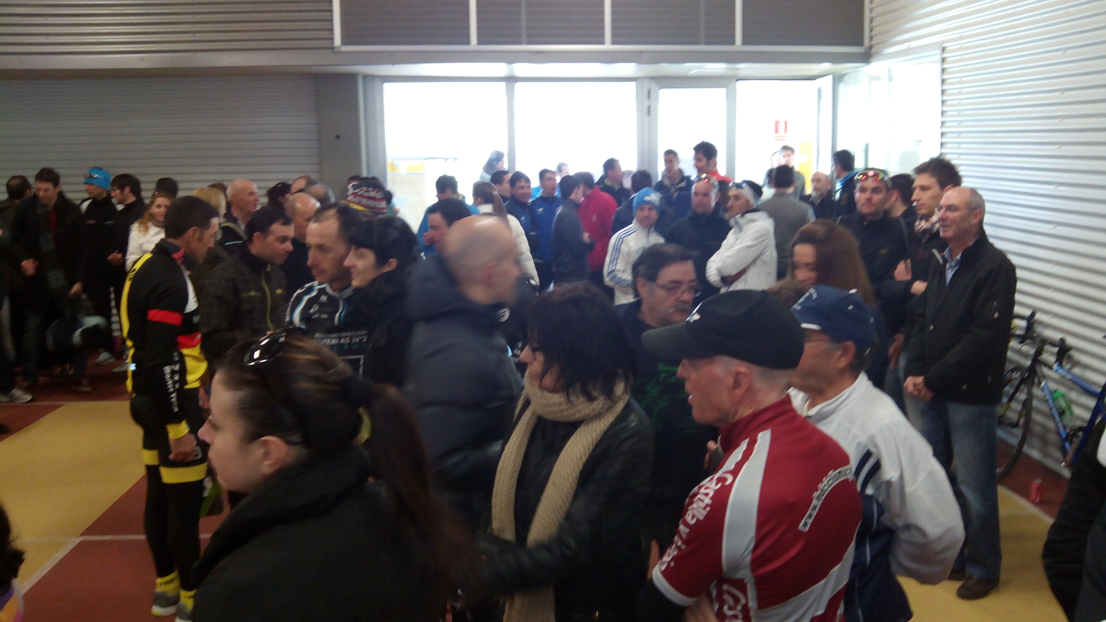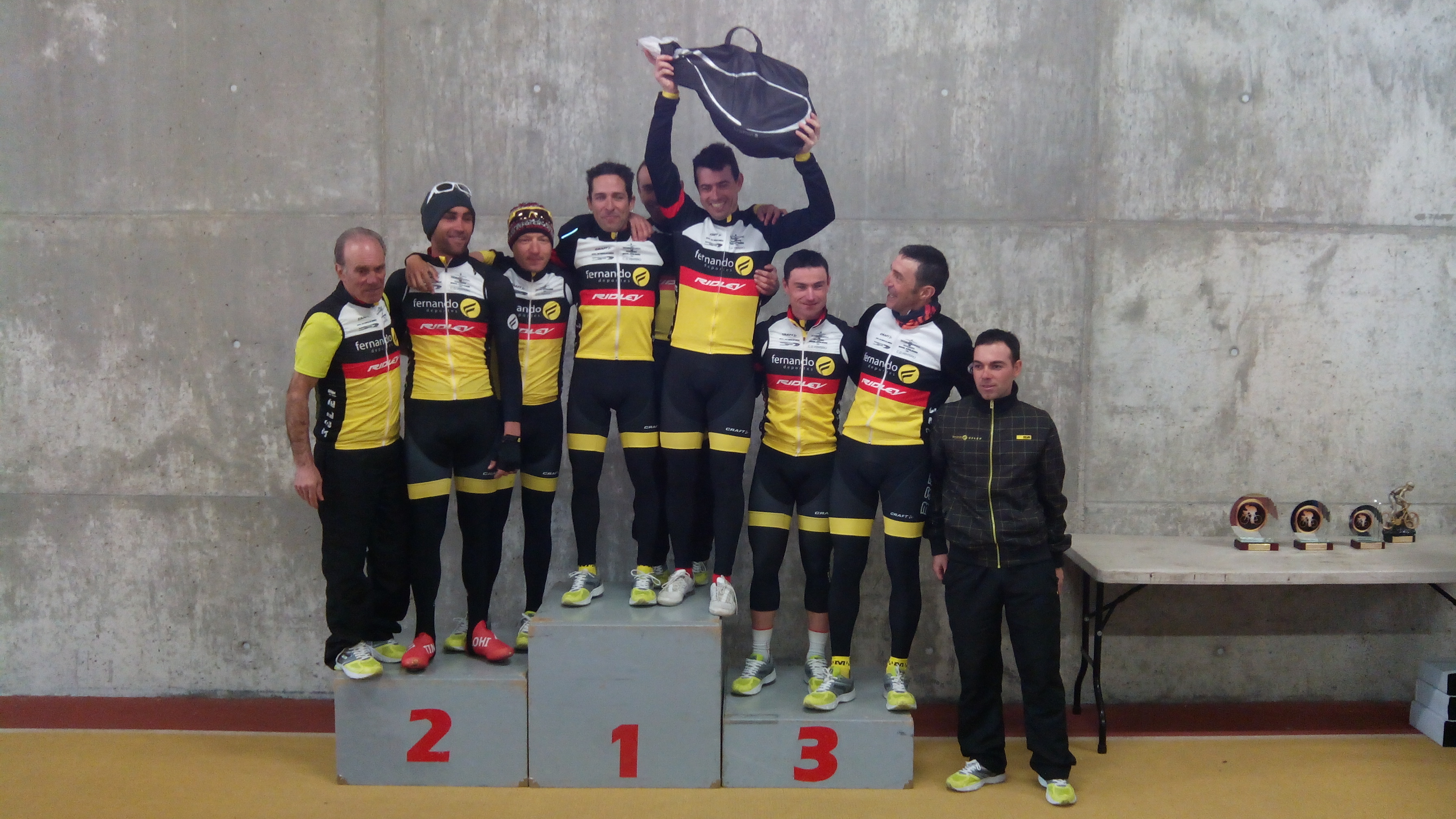 Mientras tanto, en la cabeza de carrera Jesús Merino trataba de seleccionar el grupo o puntuar para la clasificación de la montaña, o ambas cosas a la vez, en la subida de Wamba, localidad que debe su nombre a un rey visigodo y cuyo nombre se pronuncia con ‘B’, no digáis «guanba» por favor. El viento en el páramo no permitía alegrías, así que Merino volvió al redil. La jugada buena fue la que tenía preparada un hábil Turégano. El madrileño atacó en la rotonda que da entrada a Sotoverde y, mientras sus compañeros que quedaban mirando unos a otros, a ver quien le ponía el cascabel al gato, Turégano bajó piñones y puso la directa hasta la pancarta de meta, que cruzó en solitario. Por detrás Miguelín (Deportes Fernando), parece querer ganarse a pulso el título de Poulidor en la categoría máster y repetía segundo puesto.