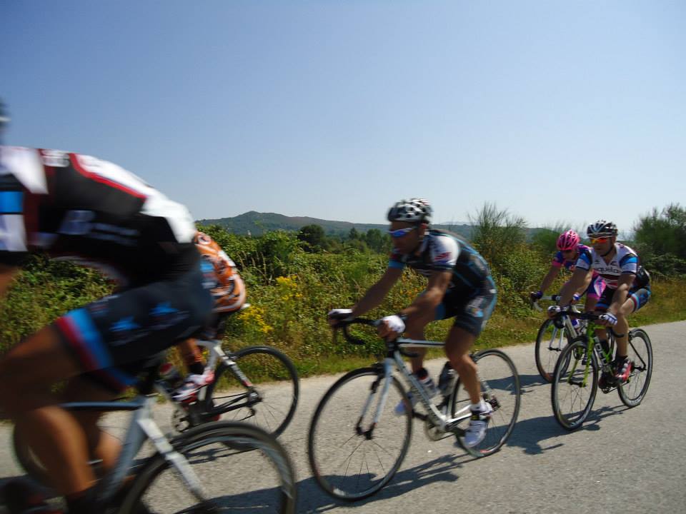 En el pelotón hubo varios intentos de recortar la distancia con los corredores de cabeza, pero la falta de organización entre los equipos que no llevaban representantes en la escapada hizo inútiles sus esfuerzos. No obstante, en los últimos kilómetros, sabedores de que aún quedaban puestos en el podium de las distintas categorías, el público asistente a la línea de meta pudo disfrutar de un bonito sprint. Llegando con una escasa ventaja un grupo de 4 unidades por delante del pelotón, que encabezaba el corredor Orensano Javier González.