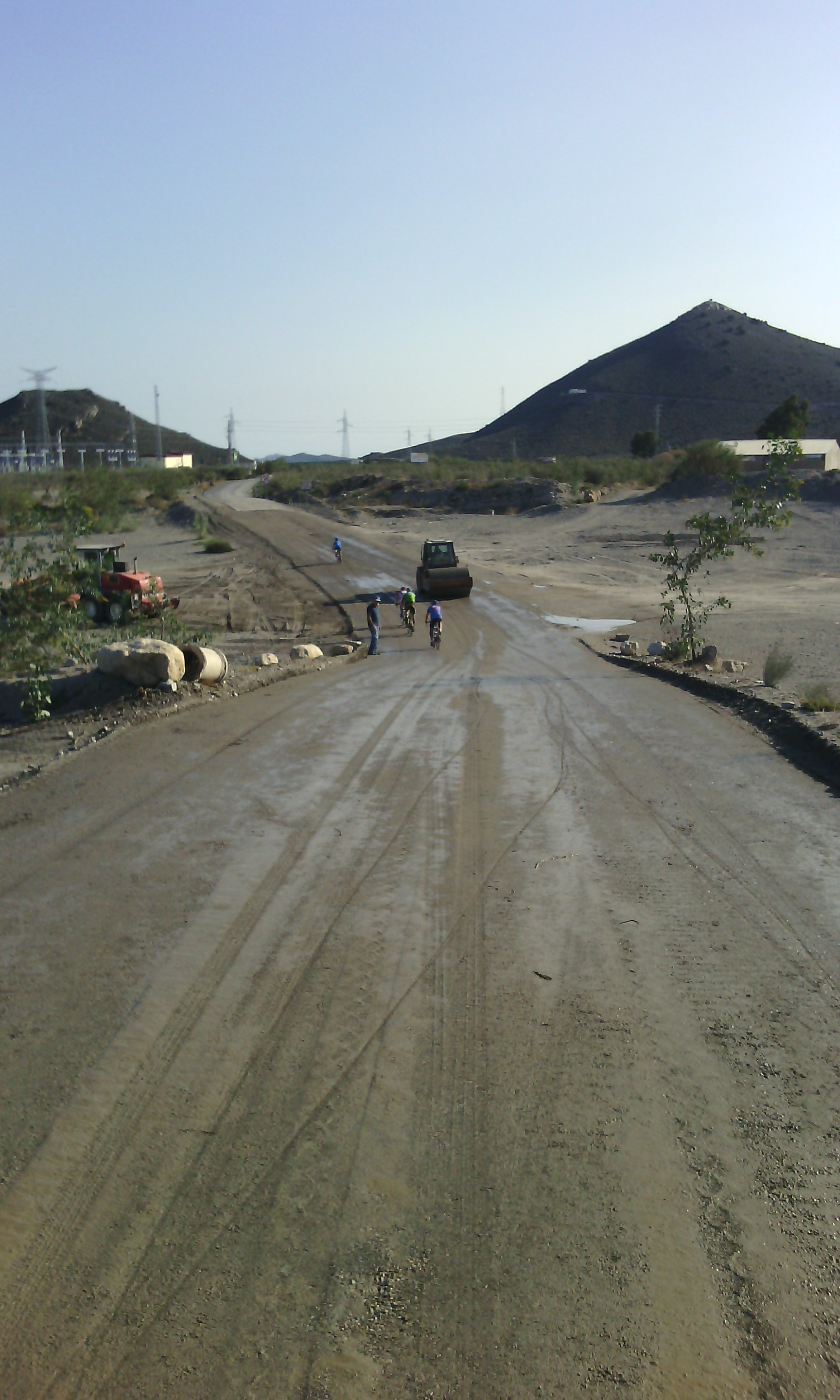 No se asfaltará como dijimos (aún no llegamos a la categoría de la Vuelta a España 🙂 ), pero se ha removido la tierra y compactado con apisonadoras. Aunque no es lo ideal, parece que ofrece suficientes garantías de seguridad para el paso del pelotón.