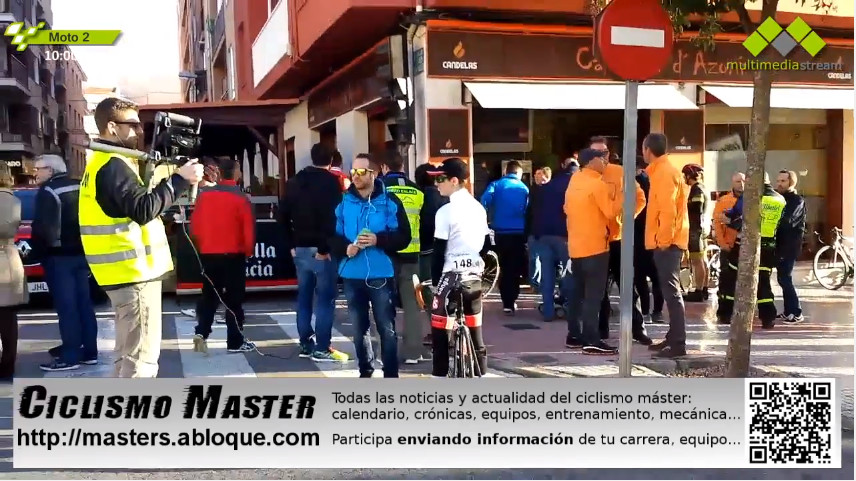 Tras el descenso se formó una escapada muy peligrosa y numerosa, camino de Bañeres y aproximándose al segundo alto de la jornada, el alto de Penyes Rojes (Peñas Rojas) de primera categoría. Antonio Martín «Pispajo» (G.D. Orquín) –que debutaba en competición este año–, Torrella y Frederic Ivars (GSport – Ayora)… . El PC Componentes filtraba a un hombre –José Manuel Díaz– en la cabeza de carrera, mientras confiaban en el bloque detrás para recortar distancias en lo que quedaba de carrera. Por el PM pasó en primer lugar José Manuel Díaz, segundo Francisto Torrella (GSPort – Ayora) y Juan Carlos Fernández «El Puma» tercero. Por detrás rodaba a unos 10 segundos otro grupo con el líder de la carrera Mario García, ya que Óscar Hernández no tomó parte en la prueba para participar mañana en la Copa de España de Don Benito. Ambos grupos se agruparon en el descenso del puerto.