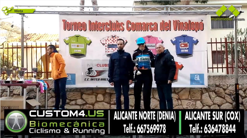 Por categorías los ganadores fueron Javier Chacón en élite, David Gor (GSport – Ayora) en máster 30, Juan Manuel Camacho (PC Comopnentes – Renault Ginestar) en máster 40, Juan Carlos Botella (PC Componentes) en máster 50, Pilar Núñez (Uniformes Murcia) en féminas: Las metas volantes fueron para Juan Carlos Fdez, la montaña para Mario García (PC Componentes) y el mejor equipo fue el GSport – Ayora.