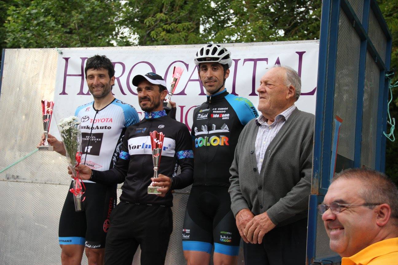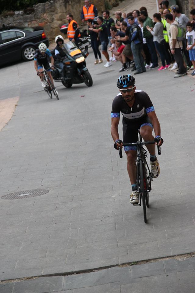 Por delante veía factible la victoria, aunque tenía que regular para no llegar vacío a la subida. No era fácil porque no podía ver la ventaja con la que contaba, aunque tenía la esperanza de que si los perseguidores no me veían, tal vez se conformasen con el segundo puesto. Sin embargo, a tan sólo un par de curvas y unas pocas decenas de metros de la meta, me pasó por la izquierda un obús llamado Eladio Jiménez y, casi sobre la línea de meta, también Mikel Sarasola me adelantó, teniendo que conformarme con la tercera plaza.